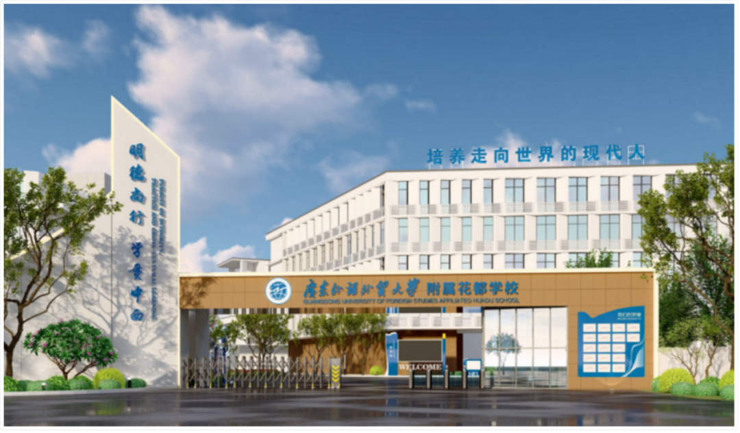 广东外语外贸大学附属花都学校是花都区教育局直属的涵盖小学、初中学段的公立学校,坐落于花都区新雅街青翠路1号,规划办学规模为36个小学班和18个初中班、2520个优质学位,将于2025年9月迎来约300名一年级学生和360名七年级学生。